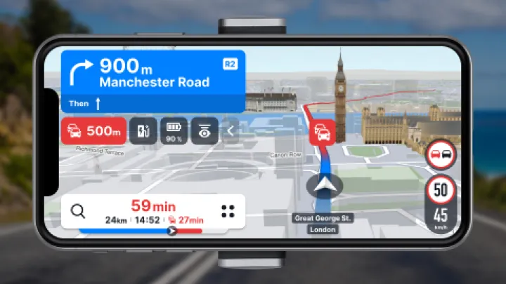 The biggest advantage of Sygic is its professional-level features. For drivers who want more than just directions, Sygic offers tools that make driving safer and more efficient. Its offline maps are powered by TomTom, ensuring high accuracy. The app’s focus on driver safety, with features like head-up display (HUD) mode, makes it stand out.